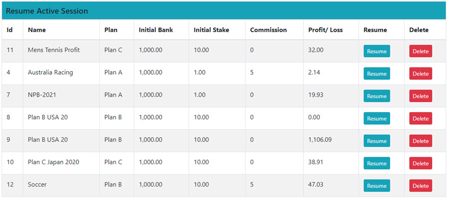 Why the need for this Online Staking Software?Yes the staking plans are easy to use, however we know most people are basically lazy when recording bets and sticking to staking plans. The old saying rings LOUD! "Failing To Plan is Planning to FAIL!"The important thing with this online software is that you have the recording of your bets and the staking for the next, on your phone, ipad or pc. And regardless of where you are if you have internet you will know exactly how much to bet on the next bet you are planning to make. Plus you have the record of the bets, this is a great way to see where you are making mistakes. And instead of lumping all your bets into one staking you can separate, them, Dogs, horses football, tennis baseball, what have you all separate. See which is making the profits and which are costing you. See below Run Multiple Plans across Sports and Racing: