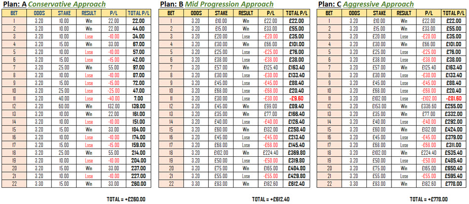 Big Difference: £518.00 more profit in the most aggressive staking Plan C,compared to the conservative Plan A