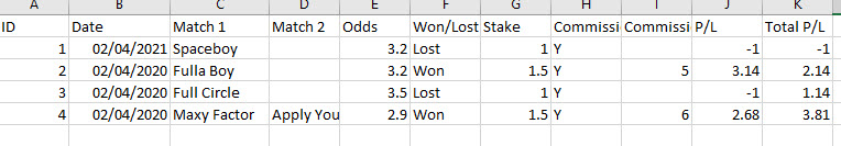 Not only is a staking software. (With 3 different staking plans). No it is a great way to record and research your betting activities. It has a Download to CSV format button. Like this: